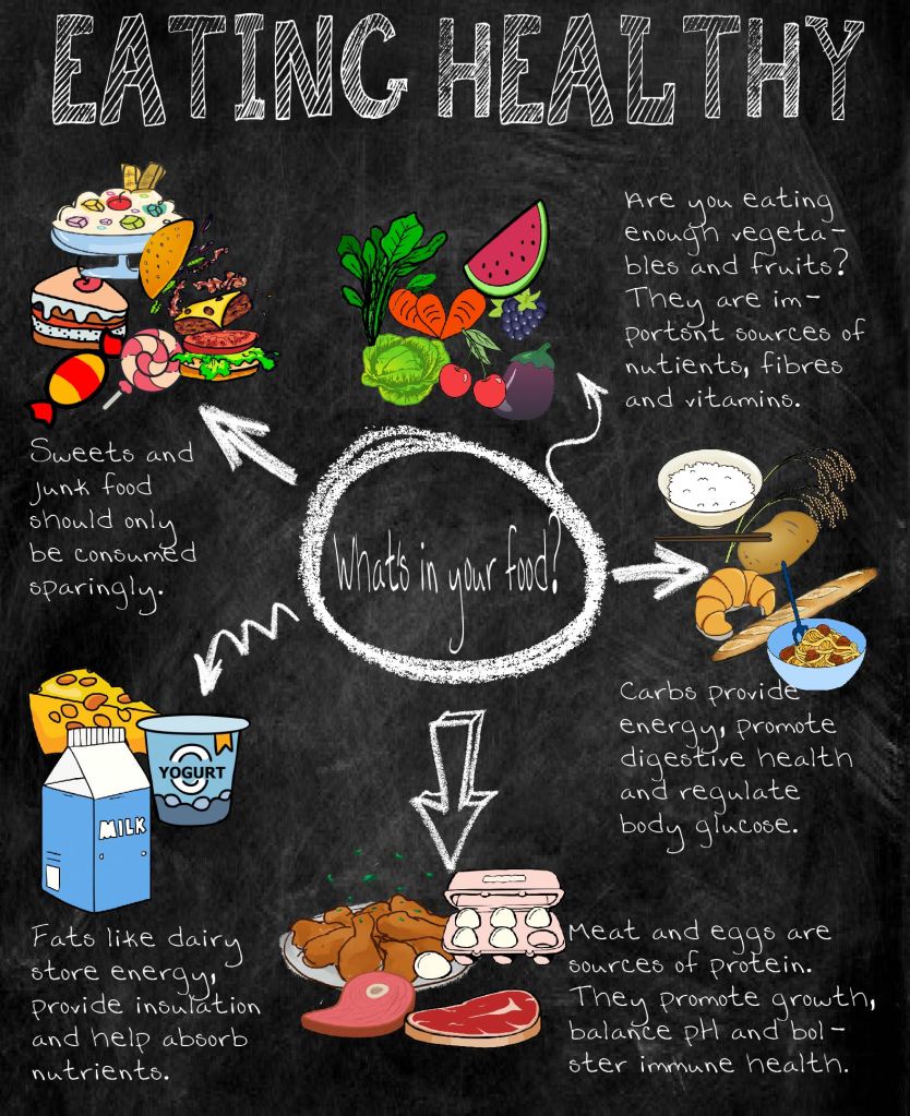 Green, yellow and red are the predominant primary colors I used in the graphic because they closely represent natural food colors. Choosing and finding pictures was once again a challenge because I didn’t want realistic-looking images. To go with the raw, chalkboard theme, I wanted images that looked hand-drawn and hand-painted. I also wanted to keep the overall design simple to make these images and the information pop. Adding all the various colors over a gray-black background, in my opinion, makes the text blocks on the sides pop more.